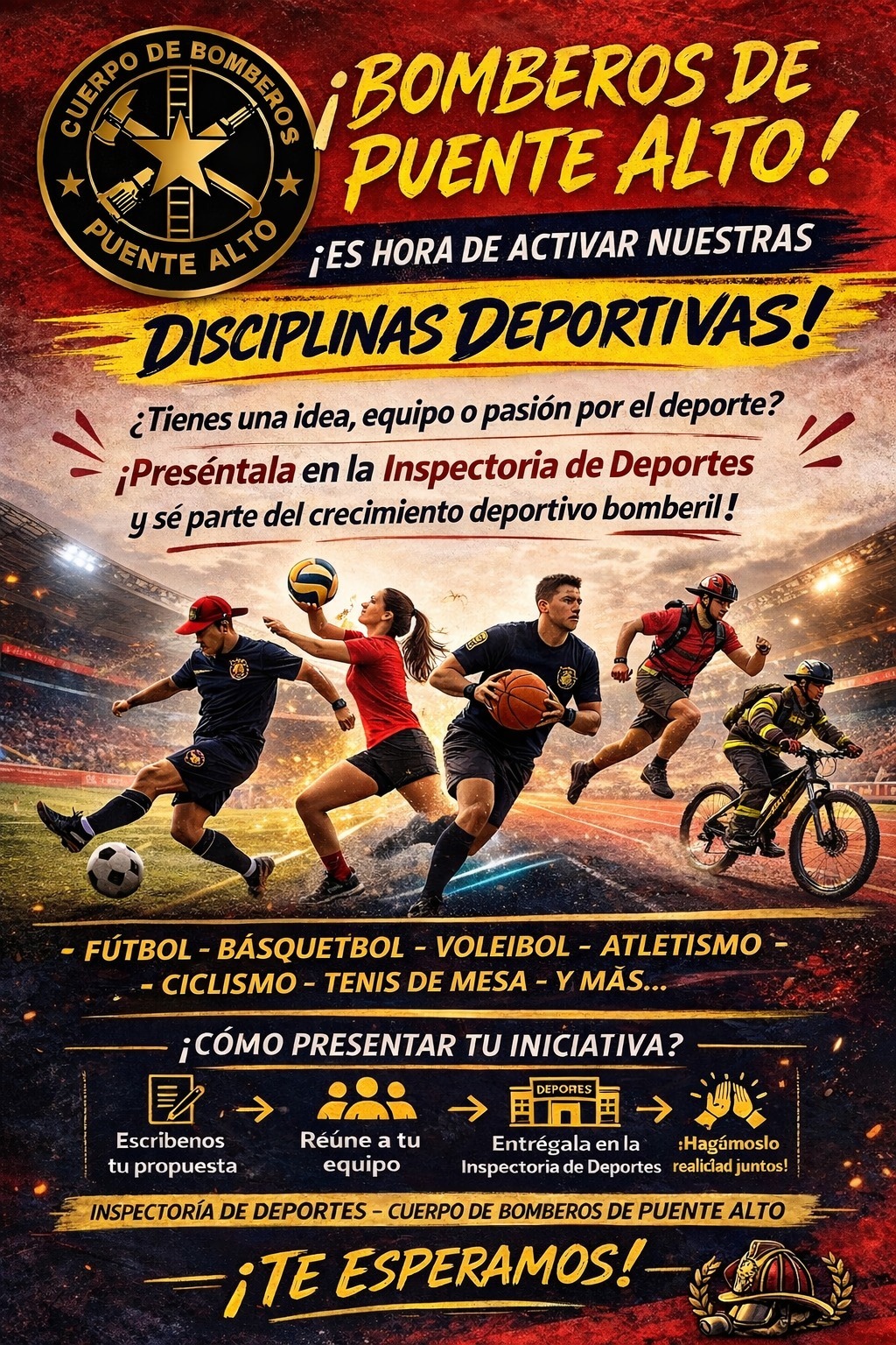 Para participar, los interesados deben redactar su propuesta, reunir a su equipo y presentarla en la Inspectoría de Deportes. La invitación está abierta a toda la comunidad bomberil de Puente Alto.